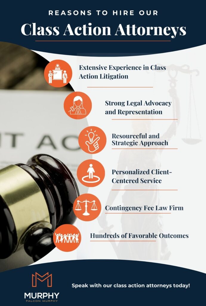 Our team at Murphy, Falcon & Murphy boasts extensive experience in handling class action lawsuits across a wide range of practice areas. We have successfully represented clients in complex litigation involving consumer rights violations, product liability issues, employment disputes, and more. When you choose our firm, you benefit from our in-depth knowledge and proven track record in navigating the intricacies of class action litigation.
