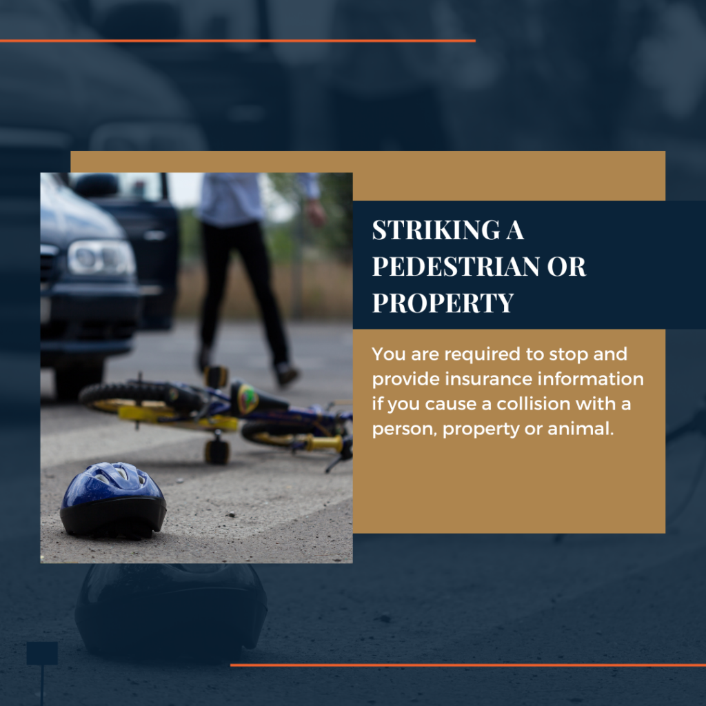 Maryland law states that you must stop if you cause a collision involving another person, property, or pet. In the unfortunate event that you strike a pedestrian or cyclist, you must immediately call 911 and notify medics of the type of injuries and location of the incident. You must keep your vehicle in the same location while an officer accesses the scene and determines the cause. If no one is injured, you should move your vehicle off the main road as much as possible so as not to impede traffic.