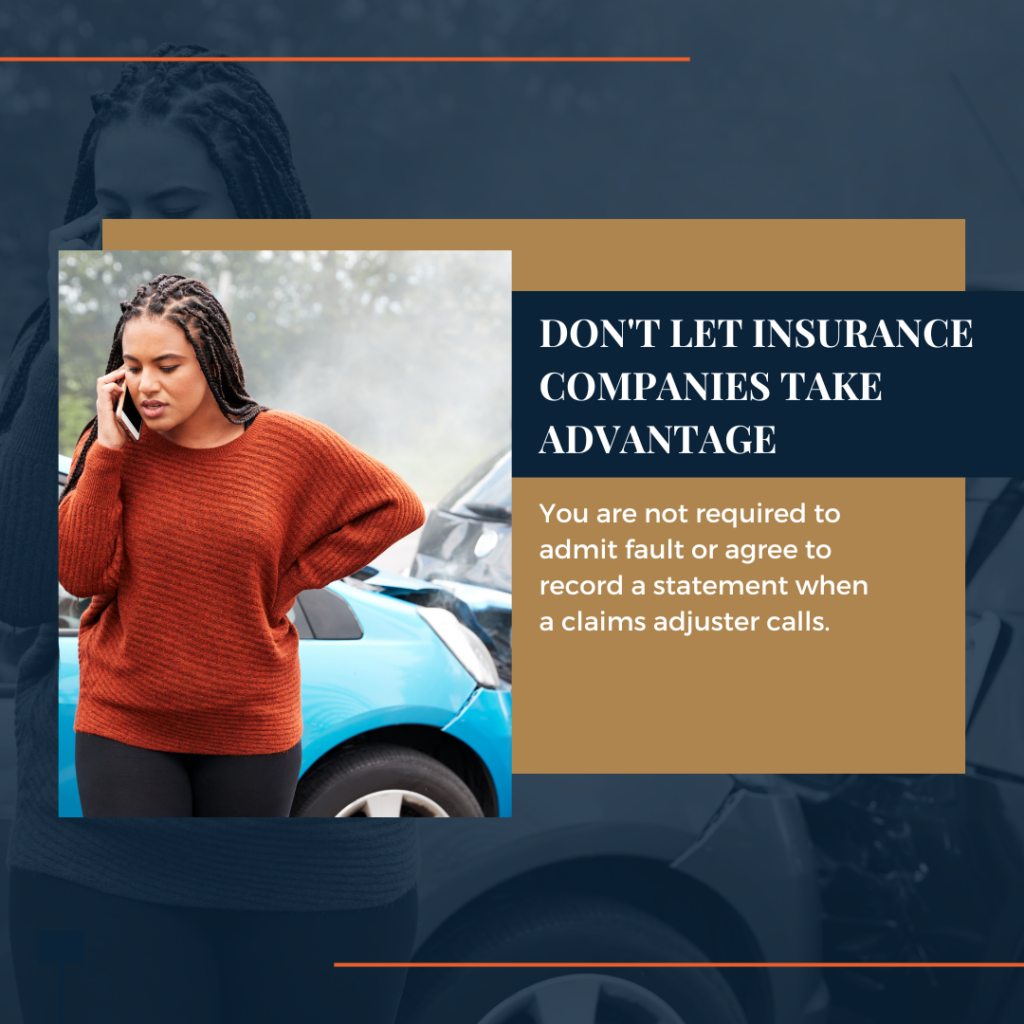In the world of insurance claims, less is more. When a claims adjuster calls, remember you are not required to admit fault or agree to record a statement. The best outcome for a claims adjuster is for you to take the first (and lowest) settlement you are offered and be done with it. Be careful with these conversations, or let your accident injury lawyer take care of it for you. The last thing you want is to agree to less money than you’re entitled to, or worse, be found at fault for a collision you were actually the victim in.