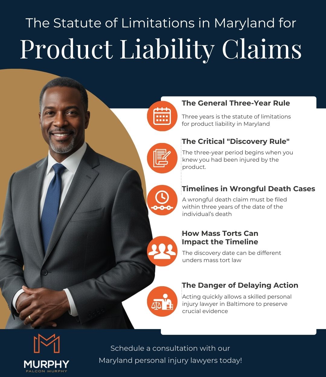When you are harmed by a product you trusted—be it a faulty medical device, a dangerous drug, or a defective vehicle part—the physical and emotional toll can be immense. While your focus is rightly on recovery, it’s crucial to understand that your legal right to compensation has a strict time limit. At Murphy, Falcon & Murphy, a leading Maryland personal injury law firm, we’ve seen how these deadlines, known as statutes of limitations, can make or break a case. If you believe you have a product liability claim, here are five key points about the timeline you must know. Schedule a consultation today.